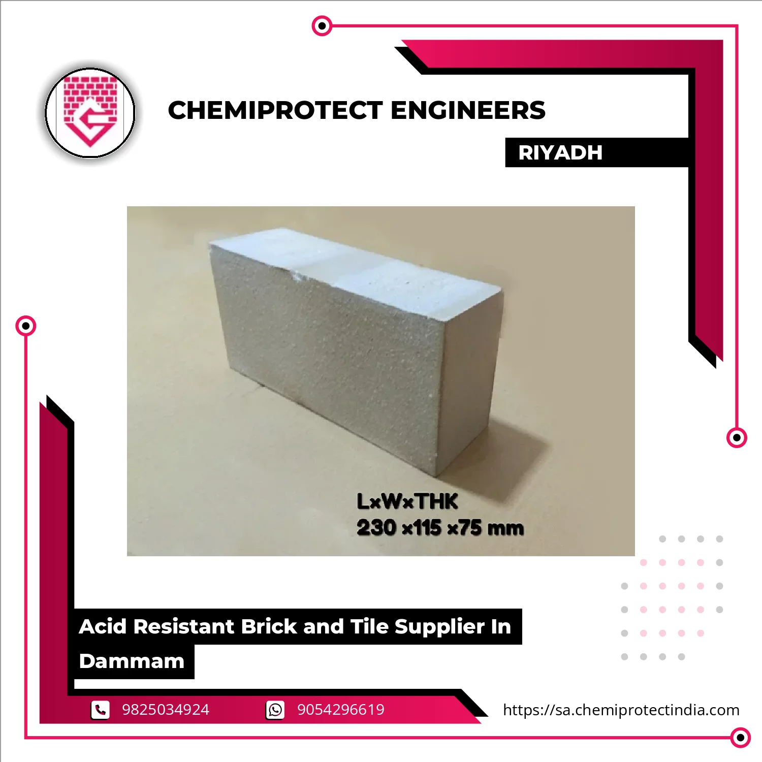 We are offering Acid Resistant Bricks and Tiles in Dammam, engineered for high chemical resistance and mechanical strength in aggressive industrial environments. These bricks and tiles are manufactured to withstand strong acids, alkalis, solvents, and thermal variations, protecting concrete structures from corrosion and chemical attack.