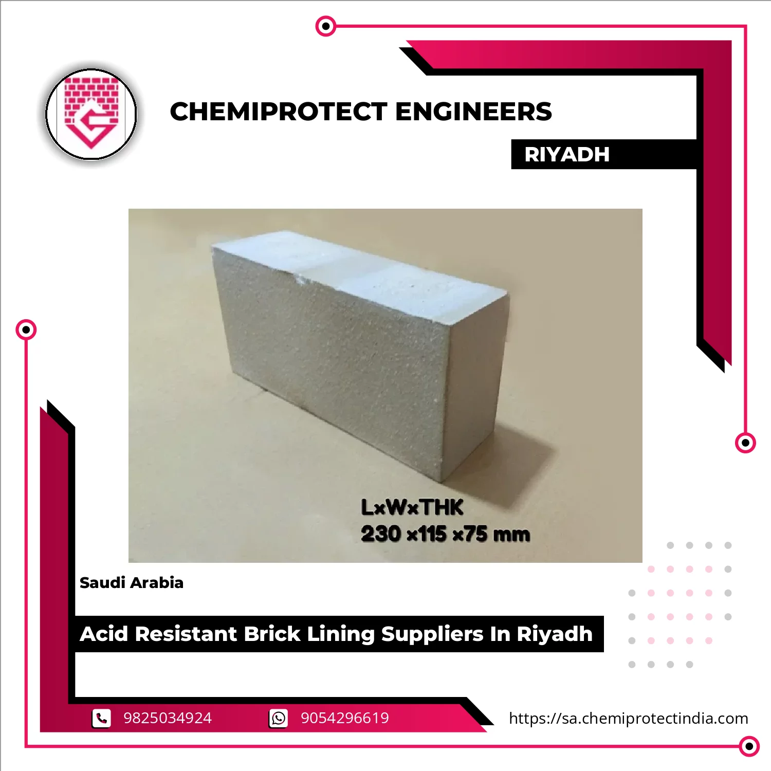 We Are Acknowledged With Being One Of The Leading Names In The Market Engaged In Supplying A Significant Range Of Acid-Resistant Bricks To The Clients In GCC. Also, We Are Offering Bricks At The Most Affordable Rates And Therefore Guarantee That Industries Of All Sizes Can Access High-quality Protection For Their Valuable Structures.Our Acid-Resistant Bricks Are Manufactured Using High-quality Clay Combined With Intentionally Selected Chemical Supplements. This Ensures Superior Resistance Agai Continue