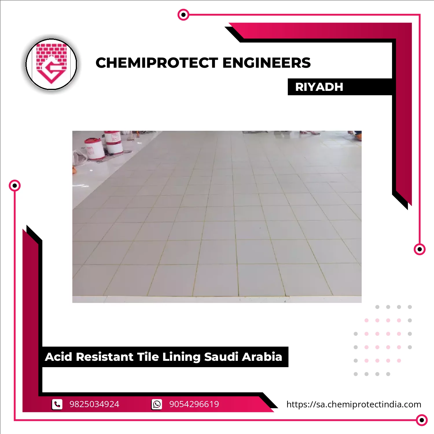 We Provide Acid Resistant Tile Lining Services In Jeddah, Specifically Created To Safeguard Industrial Flooring And Walls From The Damaging Effects Of Acidic Substances, Thermal Shock, And Mechanical Wear. This Lining System Is Extensively Utilized In Sectors Where Frequent Exposure To Chemical Spills, Corrosive Fumes, And Aggressive Liquids Occurs As Part Of Routine Processes.In Jeddah, We Provide Acid Resistant Tile Lining Solutions Specifically Engineered To Safeguard Industrial Floors And Continue