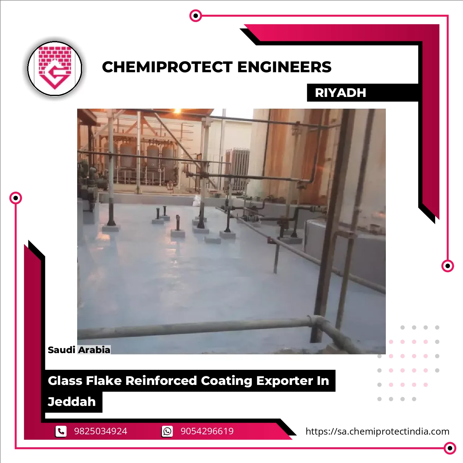 Chemiprotect Engineers Saudi Arabia Is Actively Involved In Providing A Vast Array Of Glass Flake Reinforced Coatings In Jeddah Engineered For Chemical Resistance, Abrasion Protection, And Industrial Longevity. This Coating Integrates Premium Glass Flake Additives With Specialized Resins To Deliver Superior Barrier Properties And Surface Durability. Engaged In Serving Petrochemical Units, Storage Tanks, And Industrial Pipelines, These Coatings Ensure Dependable Protection And Minimal Maintenance Continue