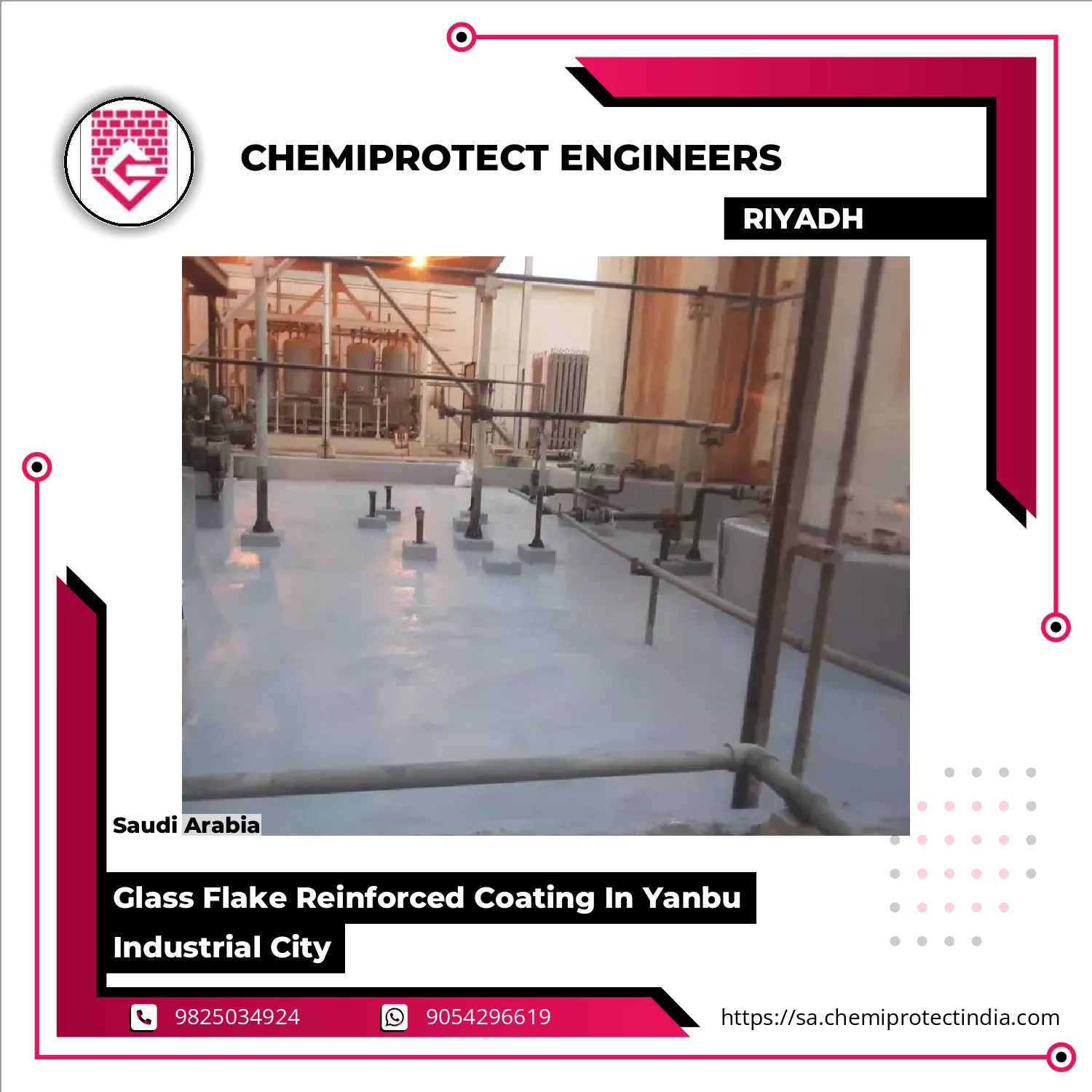 Chemiprotect Engineers Saudi Arabia Is Actively Involved In Providing A Vast Array Of Glass Flake Reinforced Coatings In Jeddah Engineered For Chemical Resistance, Abrasion Protection, And Industrial Longevity. This Coating Integrates Premium Glass Flake Additives With Specialized Resins To Deliver Superior Barrier Properties And Surface Durability. Engaged In Serving Petrochemical Units, Storage Tanks, And Industrial Pipelines, These Coatings Ensure Dependable Protection And Minimal Maintenance Continue